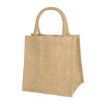 Bolsa mini con fuelle, asas redondeadas e interior plastificado. Su tamaño compacto la hace ideal para transportar objetos pequeños o utilizarla para regalos.