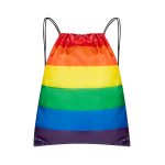 Bolsa-mochila con tirantes de cordón y cerrado de jareta. Su diseño arcoiris, colorido y alegre refleja la diversidad y la inclusividad.