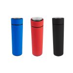 Doble pared. Cerrado al vacío. Pared interna y externa acero inoxidable. Mantiene temperatura caliente 6 hrs y temperatura fría 8 hrs aproximadamente. Incluye infusionador y caja individual.