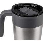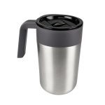 Doble pared. Pared interna de plástico, pared externa de acero inoxidable. Tapa de plástico con válvula de seguridad. Incluye caja individual.